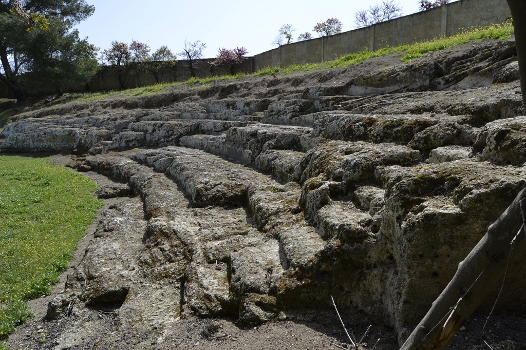 Das schlecht erhaltene römische Theater diente noch bis in das 19. Jh. hinein als Kalkofen. Der Zuschauerraum lehnt an einem natürlichen Hang, nur das oberste der drei maeniana ruhte auf Substruktionen, die unteren Teile auf dem natürlichen Fels. Eine sehr große Zisterne hinter der summa cavea hielt Thouvenot für den Wasserspeicher für die sparsiones. Im Bühnengebäude liegt ein Graben, den man für das aulaeum hält. Der Ort des Theaters ist von besonderer Bedeutung, weil hierher das sog. Stadtrecht von Urso stammt, in dem sich auch Angaben zur Sitzplatzordnung im Theater finden, siehe