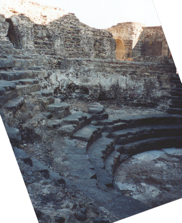 Das Odeum liegt dicht neben dem Theater. Die unteren Sitzreihen ruhen auf einem Hang, die oberen auf Radialkammern. Der Baukörper wird außen von einer Arkadenfassade abgeschlossen. Das Bühnengebäude konnte noch nicht freigelegt werden. Baumaterial ist schwarzer Basalt. Das Odeum wird unterschiedlich in die 2. Hälfte des 2. Jhs. oder das frühe 3. Jh. n.Chr. datiert.