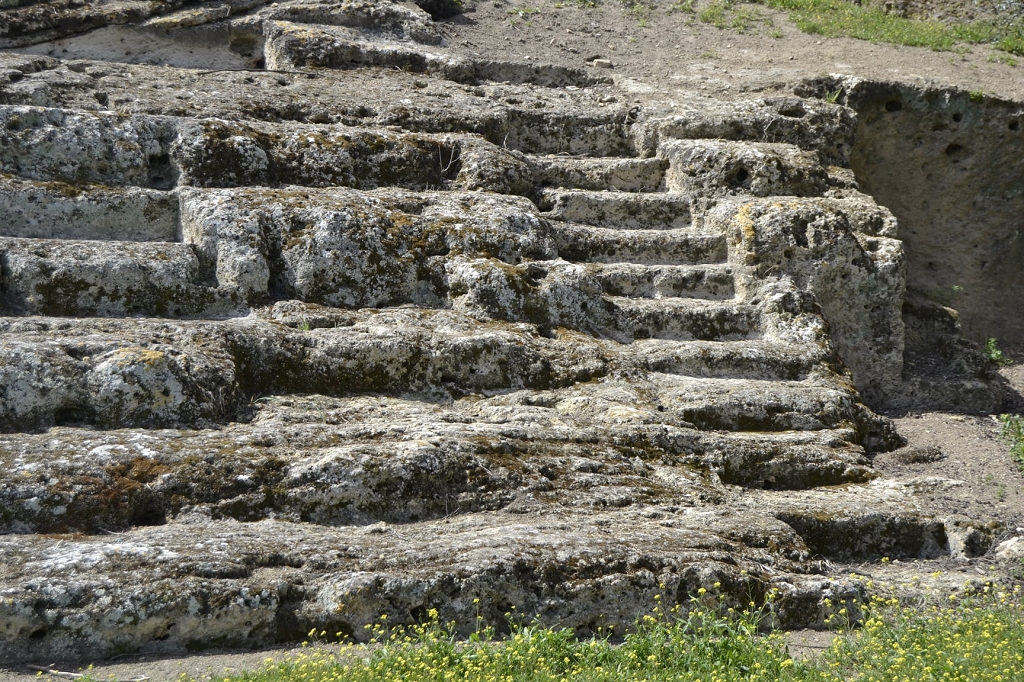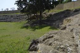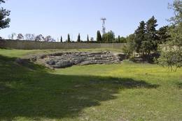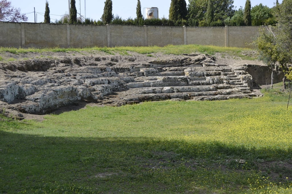 Das schlecht erhaltene römische Theater diente noch bis in das 19. Jh. hinein als Kalkofen. Der Zuschauerraum lehnt an einem natürlichen Hang, nur das oberste der drei maeniana ruhte auf Substruktionen, die unteren Teile auf dem natürlichen Fels. Eine sehr große Zisterne hinter der summa cavea hielt Thouvenot für den Wasserspeicher für die sparsiones. Im Bühnengebäude liegt ein Graben, den man für das aulaeum hält. Der Ort des Theaters ist von besonderer Bedeutung, weil hierher das sog. Stadtrecht von Urso stammt, in dem sich auch Angaben zur Sitzplatzordnung im Theater finden, siehe