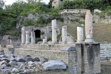 Das Theater wurde in augusteisch-tiberischer Zeit errichtet und im 2. Jh. n.Chr. restauriert.