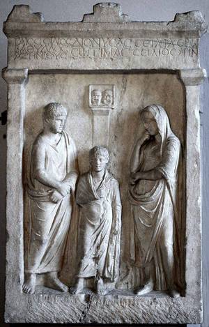 Gaius Silius Bathyllos, dargestellt auf einer Grabstele als verstorbener Jugendlicher aus einer attischen Schauspielerfamilie des mittleren 2. Jhs. n.Chr.