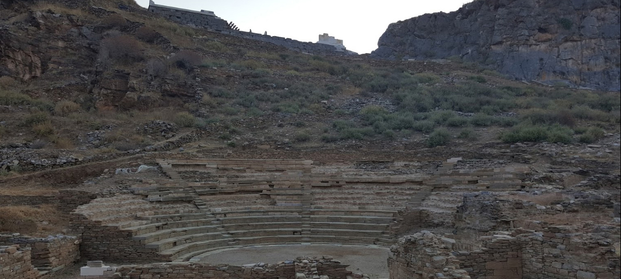 „Man sagt, daß er (Simonides) sich in Karthaia aufgehalten und dort die Chöre eingeübt hat. Die Chorschule lag oben beim Apollon-Tempel, weit vom Meer entfernt.“