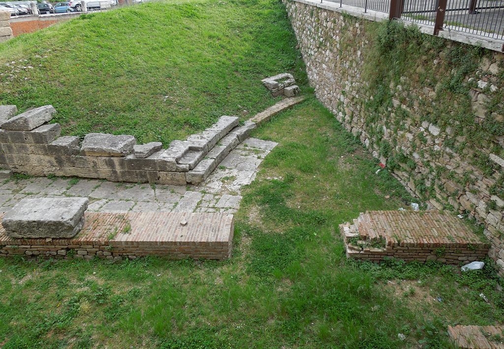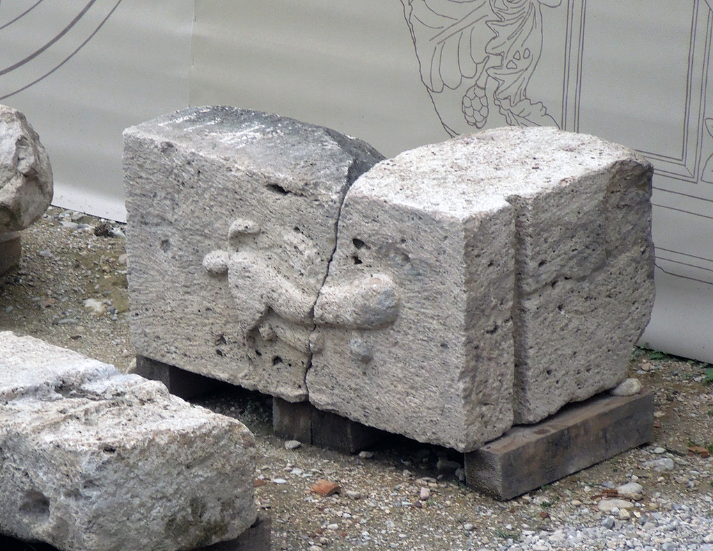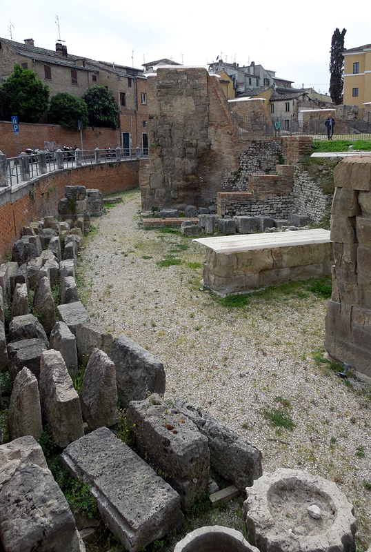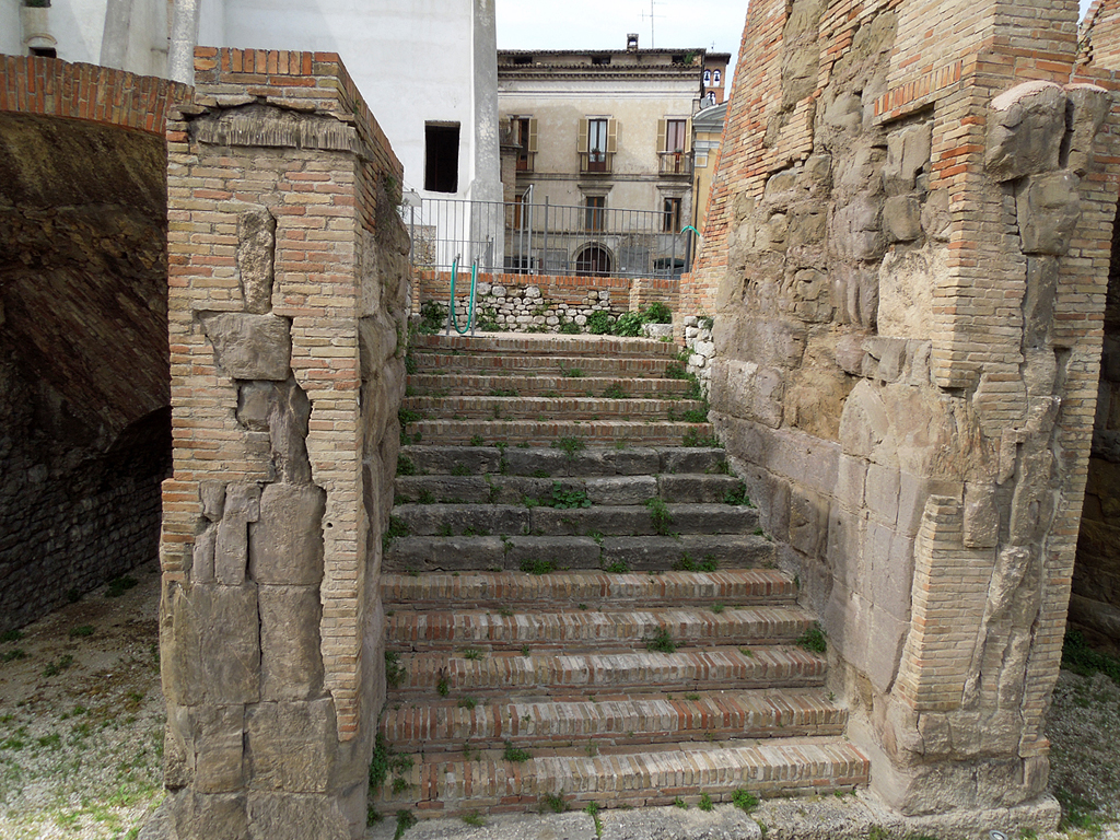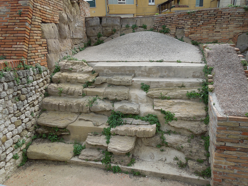Amphitheater. Aufgrund der modernen Überbauung ist das Theater nur teilweise ausgegraben. Seine Erbauung wird einerseits nach der reichen Architekturdekoration in frühaugusteische Zeit datiert, andererseits werden große Teile des Mauerwerks einer Erneuerung wohl trajanischer Zeit zugeordnet.
