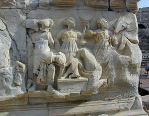 Fries auf dem Wandsockel des Bühnengebäudes mit umfangreichen Reliefdarstellungen.