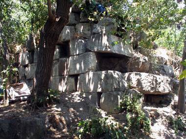 Von der cavea des Theaters ist nur seine Stelle anhand einer Mulde in einem Hang kenntlich, ferner sind stark überwachsene Reste der Substruktionen erhalten. Der Bau wurde 358 n.Chr. durch ein Erdbeben in starke Mitleidenschaft gezogen, soll aber von Kaiser Theodosius wieder aufgebaut worden sein.