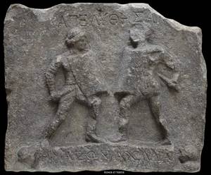 Lit.: Louis Robert, Les gladiateurs dans l'Orient grec (Paris 1940) 188 Nr. 183; E. Pfuhl - H. Möbius, Die ostgriechischen Grabreliefs II (Mainz 1979) 296 Nr. 1212 Taf. 182; M.J.D. Carter, The Presentation of Gladiatorial Spectacles in the Greek East: Roman Culture and Greek Identity, Dissertation McMaster University 1999, 377 Nr. 412 (