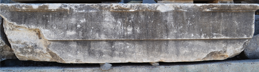 Μόσχος Μόσχου τοῦ Μο[σχίωνος] ἀγωνοθήτηςας τόμ πυλῶηα Διονύσωι