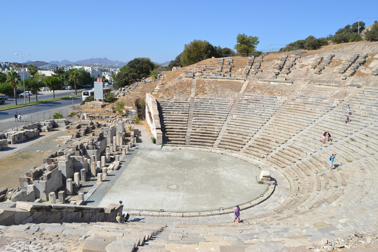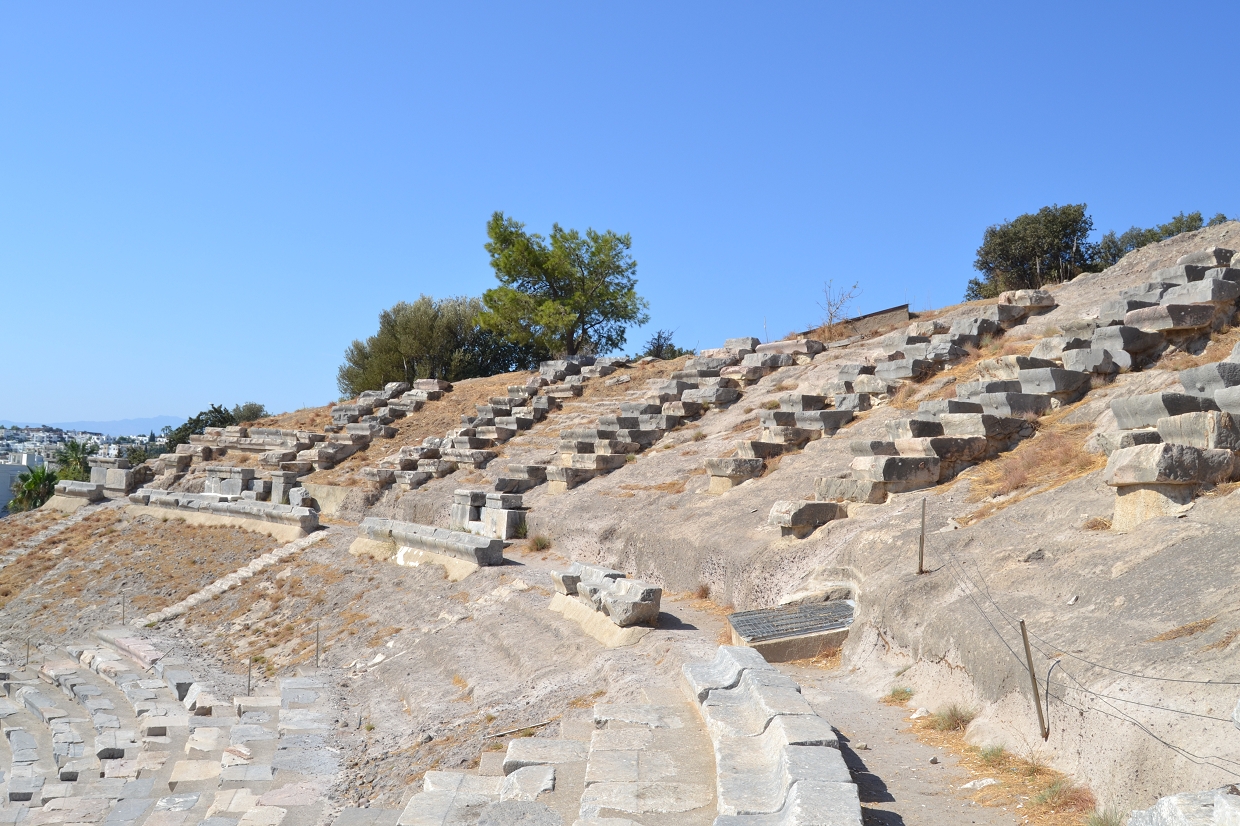 Lit.: Poul Pedersen - Signe Isager, The Theatre at Halikarnassos: and Some Thoughts on the Origin of the Semicircular Greek Theatre. With an appendix „The Inscriptions from the Theatre at Halikarnassos“, in: Rune Frederiksen - Elizabeth R. Gebhard - Alexander Sokolicek (Hrsg.), The Architecture of the Ancient Greek Theatre. Acts of an International Conference at the Danish Institute at Athens 27–30 January 2012, Monographs of the Danish Institute. 17 (Aarhus 2015) 293–317 (