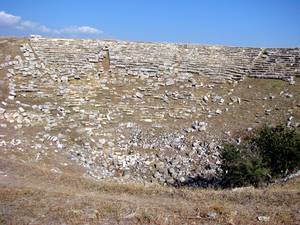 Das griechische Theater stammt aus hellenistischer Zeit und lehnt an einem Hang. Es ist wesentlich stärker zerstört als das größere Nord-Theater und besitzt nur 1 Diazoma. Orchestra und Bühnengebäude sind unausgegraben.